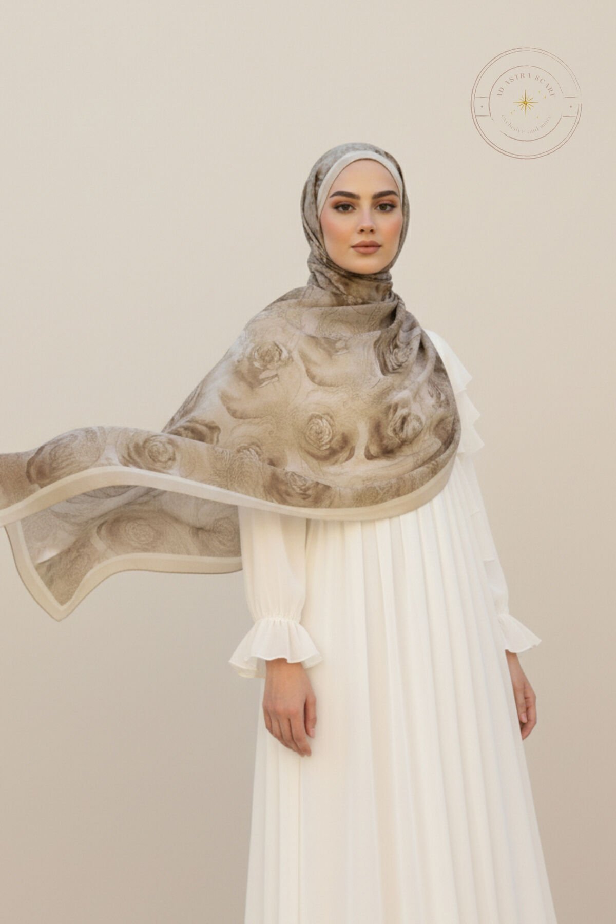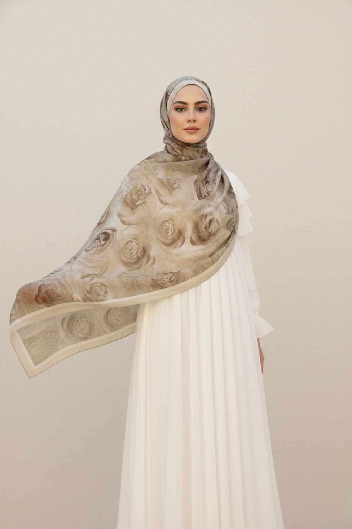 Gül Etnik Desen Soft Şal Bej - 75 X 185