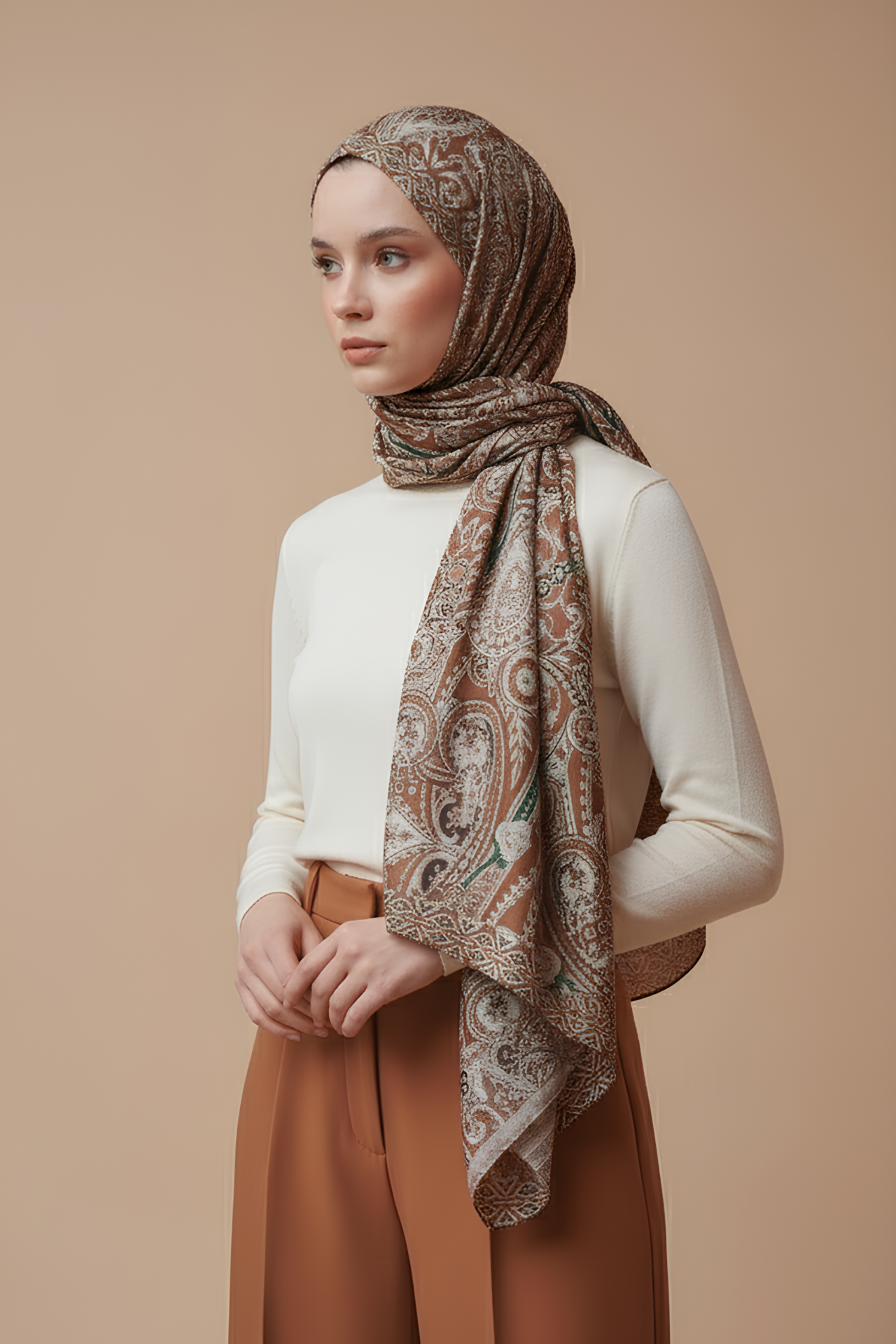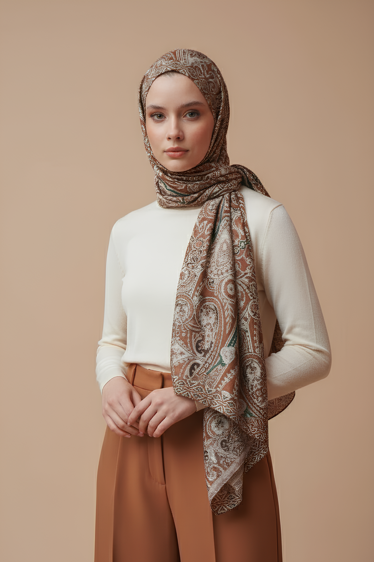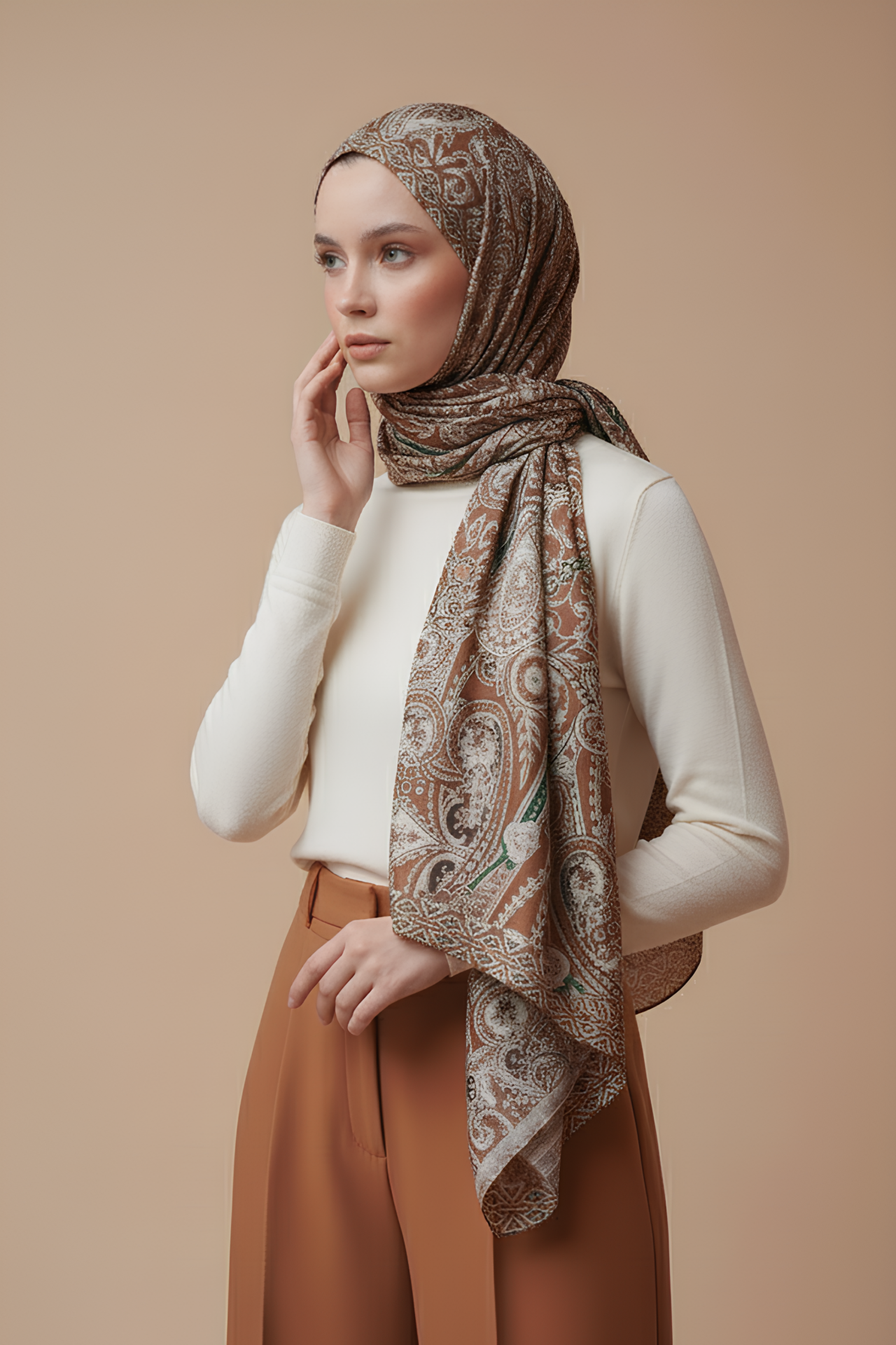 Tasarım İpeksi Şal Lara Kahverengi