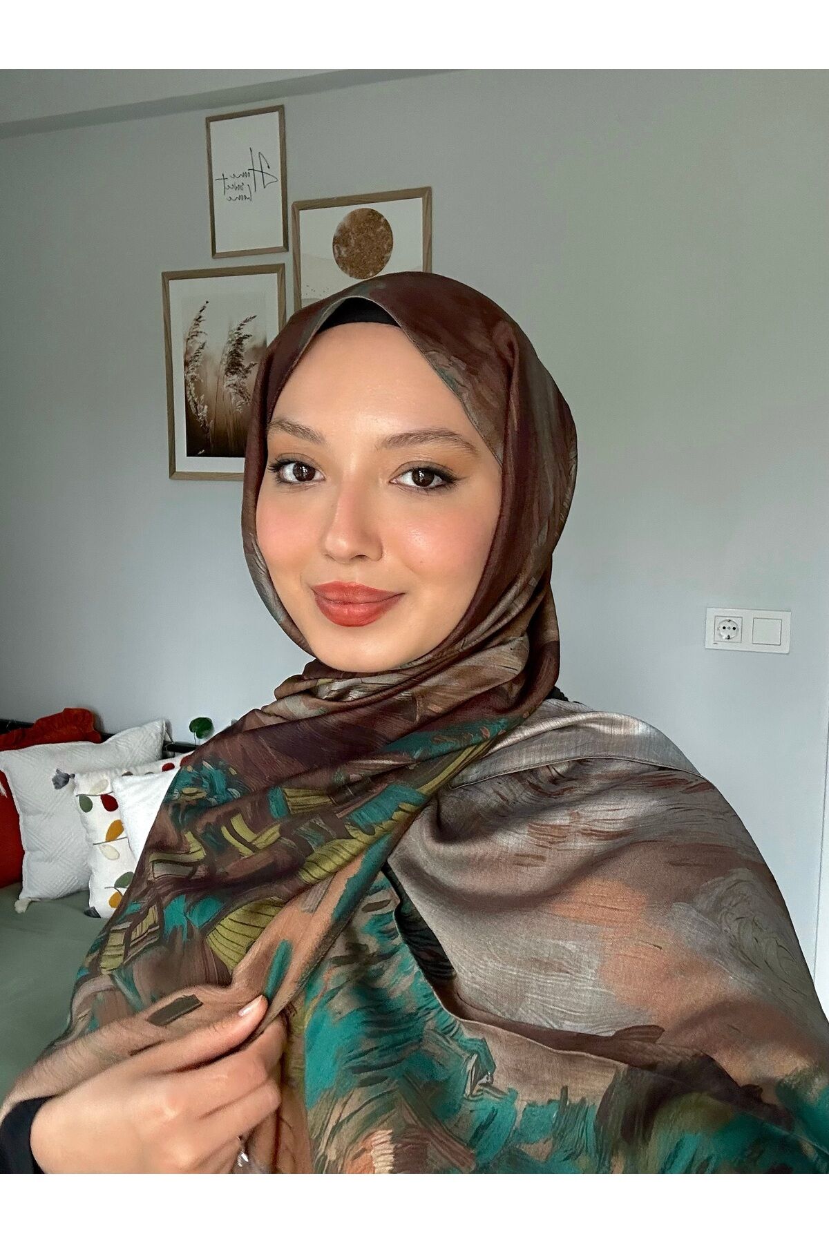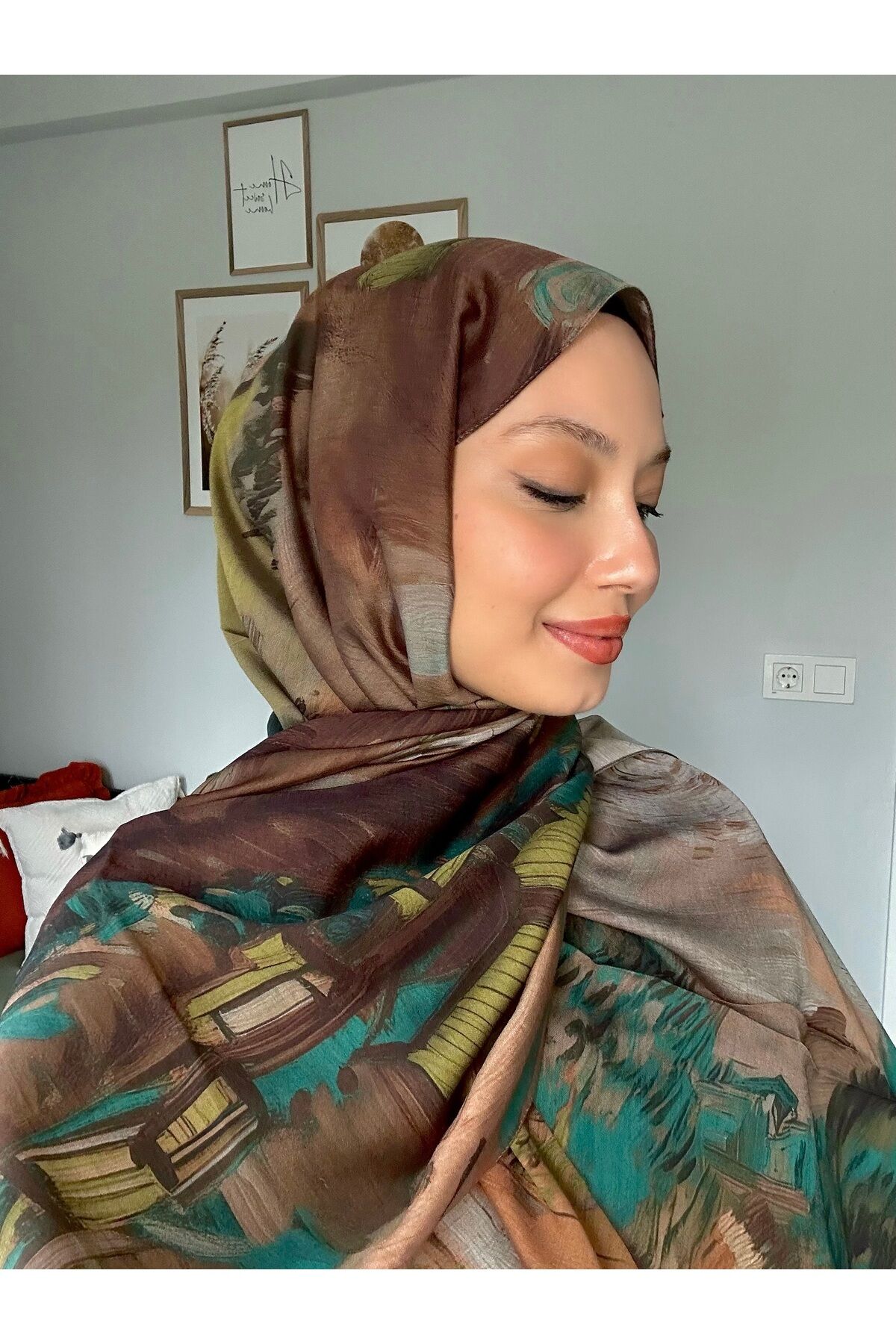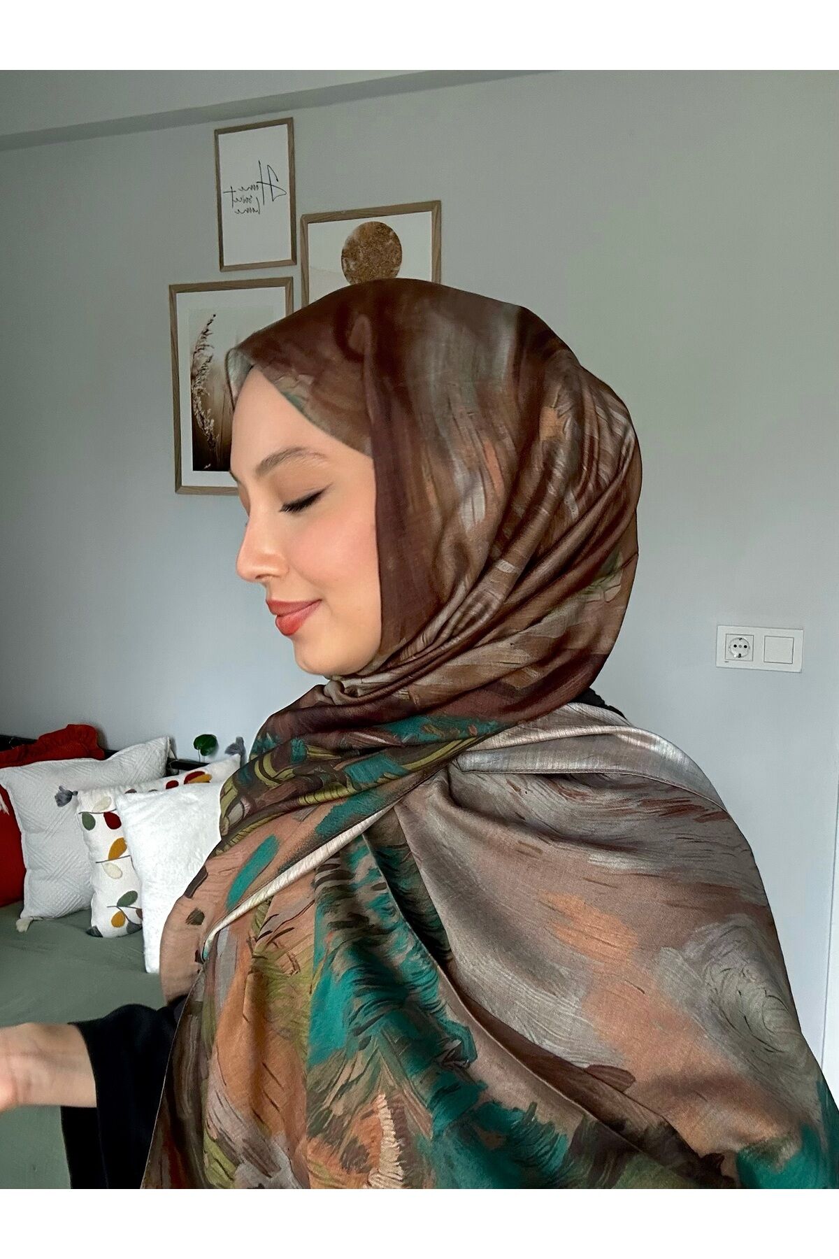 Tasarım İpeksi Şal - Van Gogh Yeşil
